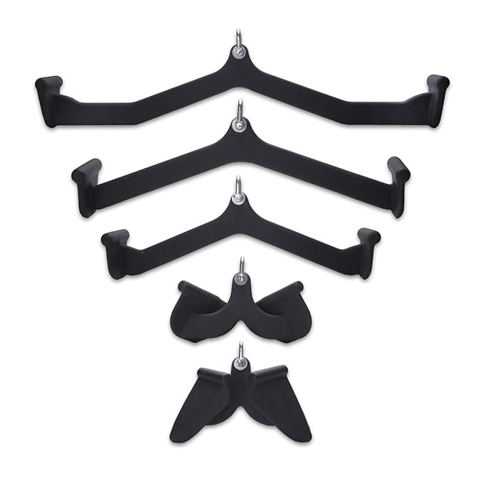 KAKSS Cable Machine Attachments. Black Matte Handles with Universal Attachment for Cable Machines. Pull Down, Press Down, Row, Triceps, Biceps & Lats. Available in 8 Varieties. (Pack Of 5 Pc (Combo))